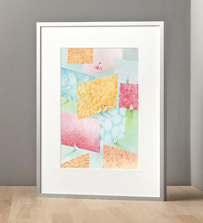 Vendu avec cadre en aluminium mat, verre antireflet et passe-partout